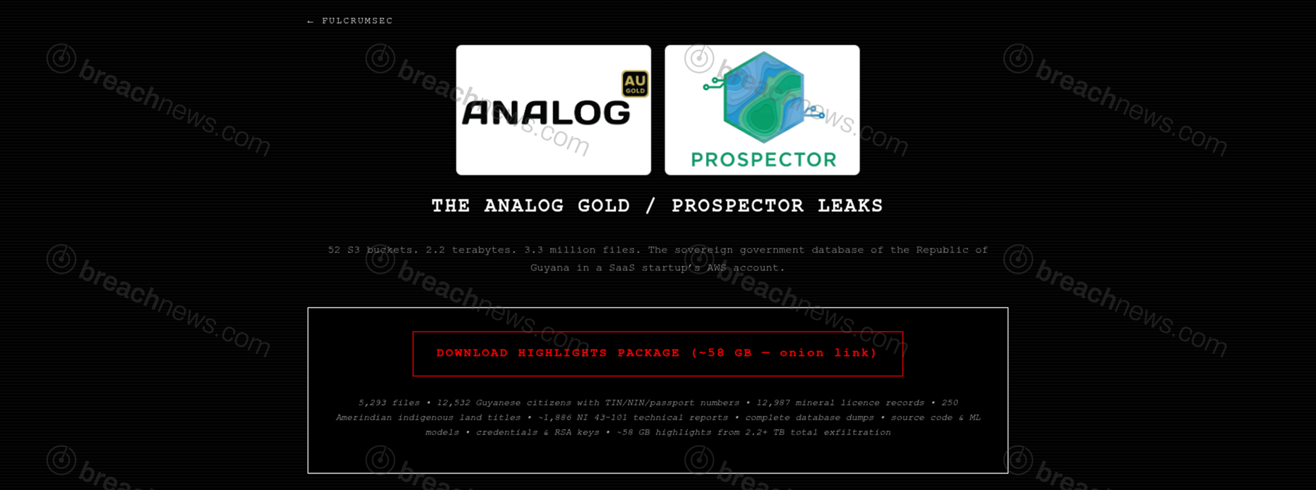 A financially motivated extortion group claims to have exfiltrated 2.2 terabytes of data across 52 AWS S3 buckets belonging to Prospector Portal, an AI-powered mining intelligence platform and subsidiary of Analog Gold Inc. The alleged haul includes what the group describes as the complete operational database of the Guyana Geology and Mines Commission (GGMC), the agency responsible for administering every mining permit in the country — stored, according to the claim, not on government infrastructure but inside a commercial US-based AWS account belonging to the startup.