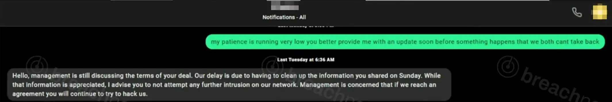 The actor framed the second intrusion as a direct response to what they described as stalled ransom negotiations. A screenshot included in the post purports to show a chat exchange in which an Xtium representative acknowledged the breach, referenced cleanup efforts following shared information, and expressed concern that reaching a settlement would not prevent further intrusion attempts. BreachNews cannot verify the authenticity of this exchange.